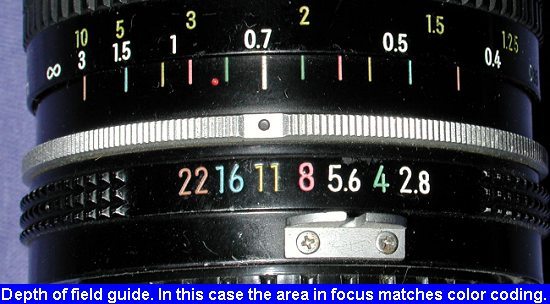 On the other hand, if you have your f-stop set at f22 and your subject is 10 feet away, you will probably have everything behind the subject out to infinity in focus and everything down to perhaps just a couple of feet away from the camera in focus. This is because it is taking longer for the light to come in through the lens. Several lenses have depth of field indicators on them that help determine how much of the view in in focus.