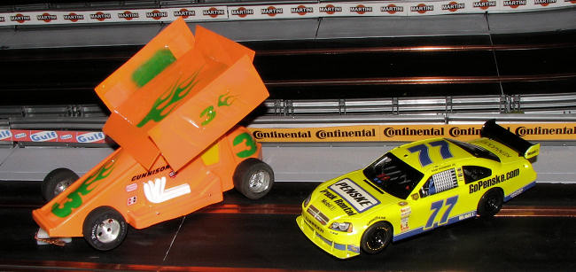 oval car is a 1/24 scale winged sprint car. These are vacuformed bodies atop a
