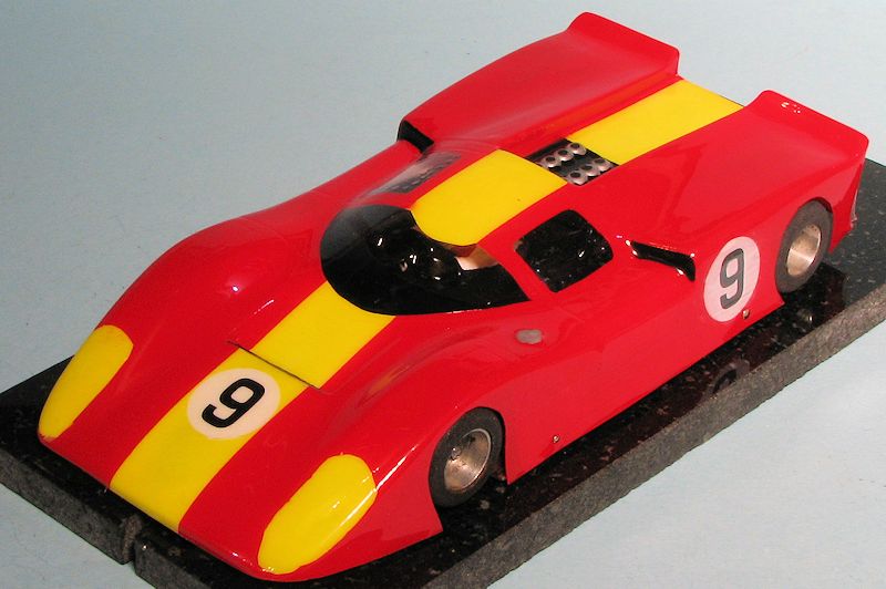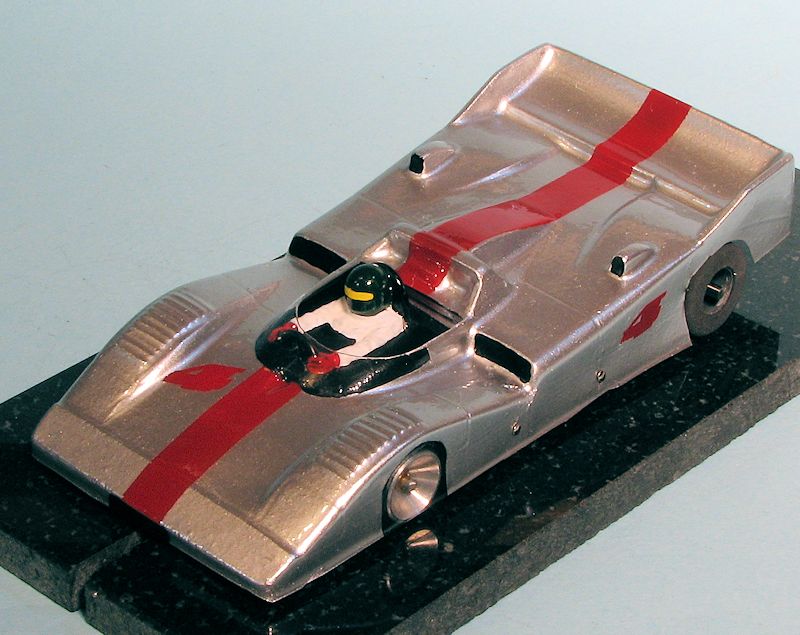 The two classes are for 1/24 'D3' chassis Le Mans cars from the 1965-73 time frame. The D3 chassis is a standard chassis, but has to be built from kits that are basically just brass sheet and brass rod. For this one I chose a Lola T-70 GT. The other is from what is known as International 32 chassis, which is 1/32 scale. These are, like the open wheel cars, a car you can build up from readily available parts or get one ready to run from various vendors. I picked a Kraemer body for mine. Again, these have vacuform bodies and while I usually get pretty fancy with them, this time around I just stuck to the basics.