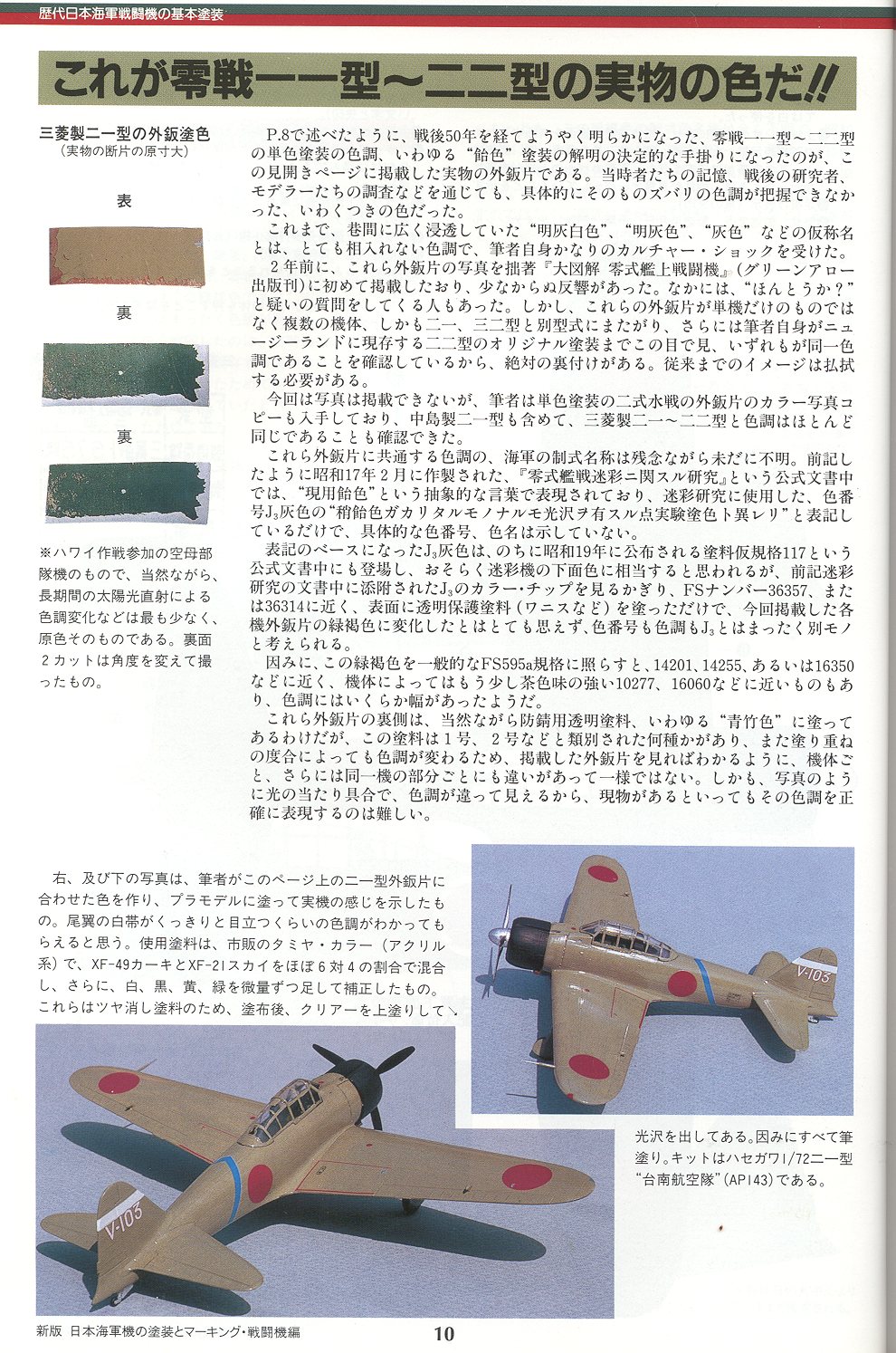 the war, we have at last identified the color worn by Model 11 to Model 22 Zero-sen.