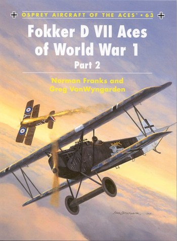 In “Fokker D.VII Aces of World War 1, Part 1" (No. 53 in the Osprey Aircraft of the Aces series), authors Norman Franks and Greg Van Wyngarden covered the German aces who flew in the Jagdstaffeln that formed the four Jagdgeschwadern equipped with the Fokker D.VII in the last six months of the war. This second volume covers the aces who flew in Jagdstaffeln that were not part of a Jagdgeschwader, and the aces of the Marineflieger Jagdstaffeln. Included in the current volume are such aces as Josef Jacobs of Jasta 7, Carl Degelow of Jasta 40, Gotthard Sachsenberg of MFJ I, Harald Auffarth of Jasta 29, Josef Mai of Jasta 5, and August Raben of Jasta 18. While not as well known as such aces as Ernst Udet, Lothar von Richtofen, Josef Veltjens, Bruno Loerzer, Georg von Hantelman, or Rudolf Berthold, the pilots of these independent Jastas fought the British on the northern front and the Americans at the end of the war, giving good account of themselves and their units.