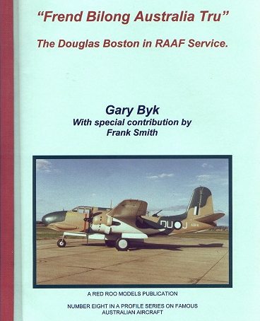 This book is number 8 in a series of aircraft monographs, concentrating on aircraft that served with the Royal Australian Air Force (RAAF), prepared by Red Roo Models. The series to date covers the P-39, Buffalo, Kingfisher, Kiowa, Mustang, Mirage and a book on understanding RAAF colour schemes. The books are specially written with both the modeller and enthusiast in mind, covering not only the history of the aircraft, but also tips for building the relevant models. Anyone interested in RAAF aircraft of WWII, or the Boston/A-20 family of aircraft, should be interested in this book. The book is available from Red Roo Models ( http://www.redroomodels.com.au ), for $25.00AUD, with postage charged at cost.