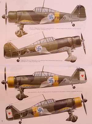 Color pictures from restored aircrafts under Netherlands and Finnish schemes, b/w wartime factory on line details, from fuselage to the wings. A long listing recall the fleet manufactured and open to big size profiles (almost a plain vertical A4 format), which cover every AF with all camo types, and aircraft mark covered in the different chapters above. The good 1/72 scale drawings depict there the contours, with engines, skis, and retractable gear amazing project. The four last pages are two A-3 format 3D skeletons views which display the interior lay-outs, a very comprehensive way to improve the mercury/wasp powered aircrafts kits.