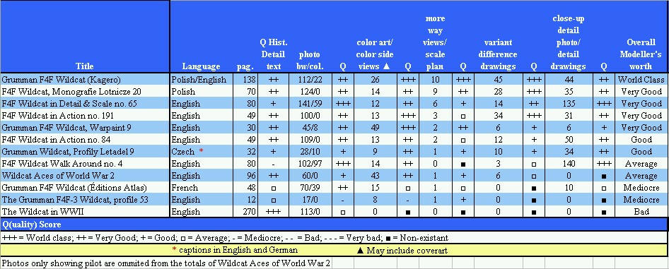 Pros: it is the utter king of side views both in number and in varieties. It also offers an overview of every Wildcat kit up to 1997. Really written with the modeller in mind. Worth every dime you have to pay for it.