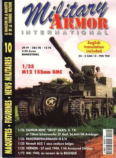 It has in its 50 pages the following articles. M12 Kit in 1/35 scale by Academy. A Sdkfz 8 in 1/35 by DES kits and a Scheinwefer 37 searchlight also by DES. A diorama in 1/72 scale with the following kits S35 1/72 by Heller, S35 by ALBY and H39 also by ALBY. A 1/35 scale Dragon Pz III. A round up and examples of the models at Saumur Model 2000 show. A 1/35 scale model of the ACG1 by ALBY. Lastly in 1/35 scale a diorama of Lead Sled Bofors 40mm with Lead Sled Bedford QL and conversion by Plus Models.
