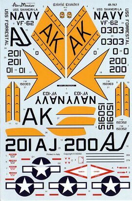 The second plane is from VF-103 "Sluggers" flying off of the U.S.S. Forrestal. I have always been fond of the huge arrow squadron markings of this squadron and this sheet include a real big yellow one for your next crusader project.