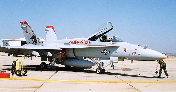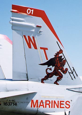 For me, would its Hornets of VMFA-232 "Red Devils", VMFA-212 "Lancers", and VMFA-235 "Death Angels". When I was stationed at MCAS Kaneohe Bay (jeez- ten years ago) these three squadrons were based there as well. They formed the fast jet component of a unique command, the 1st Marine Expeditionary Brigade. The 1st MEB consisted of the F/A-18 squadrons, four CH-46 squadrons, a CH-53 squadron, an infantry regiment, an artillery battalion, a service support group, and other units of various designations. What made 1st MEB so special was that all the units weren’t dispersed throughout three or four separate bases. They were all co-located on one base within five minutes of each other. Exercises and overseas deployments were usually done within elements of or the entire MEB. As a result of such close proximity and association, a tight familiarity formed between the air, ground and support elements. Around 1994, the MEB, as a single command, stood down. Eventually, all the jets and some of the helicopter squadrons left Kaneohe Bay. When I was in Japan, I saw VMFA-232 and VMFA-212 again. When I ended up at Miramar, there was VMFA-232, too. It was like having a neighbor follow you around on three cross-country moves for six years.