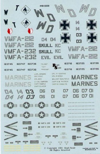 A few years later, Repliscale went out of business and I was searching for the same sheet again. A request posted on RMS yielded a positive response from a Marine who worked at a hobby shop near Camp Pendleton. That Marine was Dave Roof. It turned out that we were both with Marine Air Group 46 at NAS/MCAS Miramar. Around that time, I learned that William "Skull" Guilfoyle had been promoted to Lieutenant Colonel and had returned to VMFA-212 for a third time, as CO of the squadron. After a short correspondence with him via email, he sent me the attached photos of the real Lancer 03 and himself. I finally learned why his callsign was "Skull".