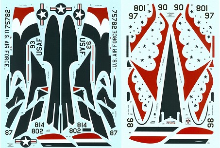 You get two sheets, printed by Scalemaster using their Invisaclear printing process. They are in perfect register, and provide serial numbers for all of the F-105Bs assigned to the team.