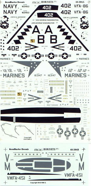If you are so inclined (as I am), Aeromaster sheet # 48-396 has the decals to do the other 2 Navy F/A-18 units from CVW-1 (VFA-82 & VMFA-251).