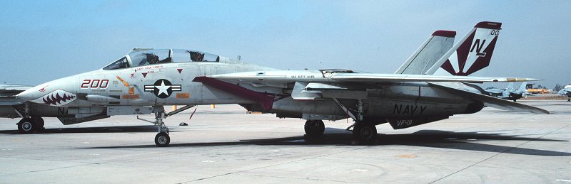 The skull & crossbones markings live on , carried by VF-103 F-14B’s. VF-111 was to become the first F-14D unit, but plans were cut short by budgetary constraints, & the unit was decommissioned.