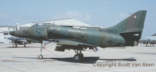 This A-4 makes its appearance in this scheme during the final years of TopGun's use of the A-4 Skyhawk. Unusually for TopGun, this aircraft is painted in a two green, and two brown wrap-around scheme. TopGun tended to favor gray, blue and tan/brown combinations, but occasionally a green jet would be painted up.