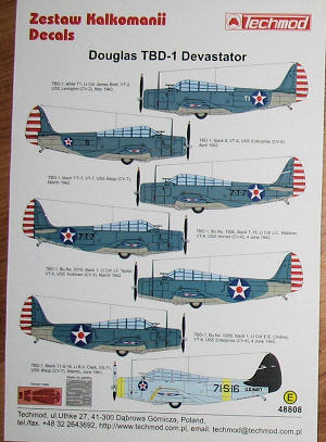 slow moving TBD-1 Devastator is the subject of this decal sheet 48808 from