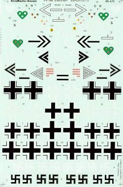 All in all a VERY nice sheet I think and, without spending too much time checking all the various combinations of the crosses, I think you should be able to do at least three of the a/c off the sheet as it is. And I'm sure if you wanted to do more your spare decals would provide. And you'll have to dig in your decals anyway as there is no stenciling provided at all. As for suitable kits, with the Dragon A-4 currently OOP (I understand) I guess it's the Tamiya A-3 with a few mods for those a/c and one of the A-8s for the A-8 and Gallands A-6, again with a few mods. Nothing too taxing, as far as I know.