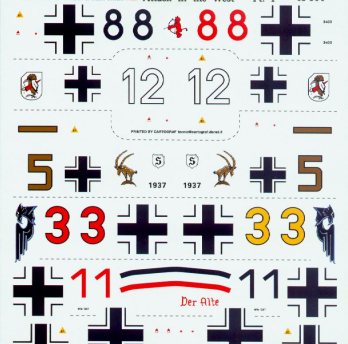 As previously mentioned, these decals contain only the bare minimum of stencils, but quite a few balkenkreuz. Also worth mentioning is the mix of early and late style of the halkenkreuz positioning on the tail.