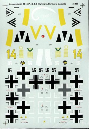 The first aircraft shown is Marseille's Yellow 14, a Bf-109F-4/Z Trop, one of