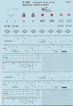 This sheet offers markings for two aircraft, one each from VF-43 and