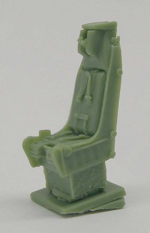 This seat is for the A-4 Skyhawk or A-7 Corsair II. All you get are two pieces of green resin without a painting instruction. They forgot to do the ejection seat handle on top of the seat and air bubbles are molded in. Nice are the seatbelts they are very realistic. The seats are kind of expensive if you consider that Neomega makes the ten times more detailed K-36 seats for the same price.