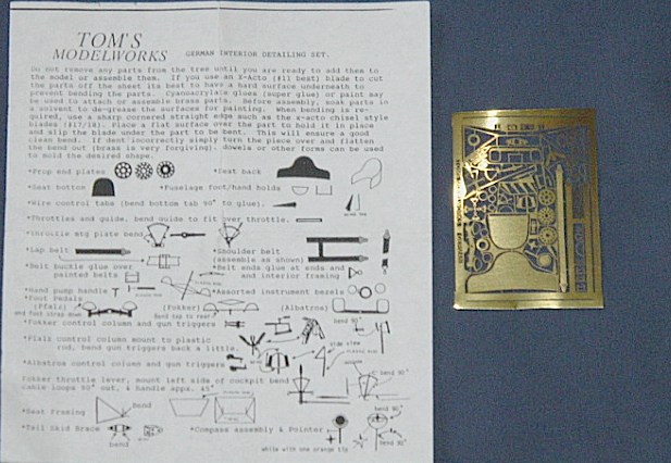 There’s really no history for this kit. I have the 1/32 kit, but, it is the same thing in 1/72 ; 1/48 ; and 1/28 scales. It is basically an update/ detail kit for German WWI aircraft interior. It is actually a fairly accurate brass PE kit. It comes with the obligatory seat, and lap/shoulder belts. After that, it just goes NUTSO! It gives you 3 different kinds of propeller bosses for the end of the prop. There are the round and square foot/hand holds . It might be noted for those of you not familiar with the “Great War”, that the aircraft were manhandled into position sometimes, and the “handholds” were on the outside rear fuselage to accommodate this.