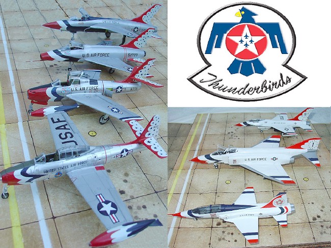 | KITS: | Tamiya F-84G Thunderjet; Airfix F-84-F Thunderstreak; Minicraft/_Hasegawa F-100 SuperSabre; Minicraft/Hasegawa; Minicraft/Hasegawa F-105B Thunderchief; AMT/ERTL F-4E Phantom; Minicraft/Hasegawa T-38 Talon; AMT/ERTL F-16A Fighting Falcon. |