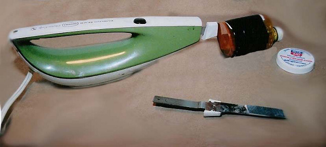 A paint shaker is one gadget every modeler needs. They can be bought at the hobby shop or mail order for about $50. An electric carving knife is one gadget nobody needs. They can be bought at garage sales or Salvation Army stores for $1 to $3. Guess what you can do with the latter – that’s right; convert it to the former with a bare minimum of tinkering.