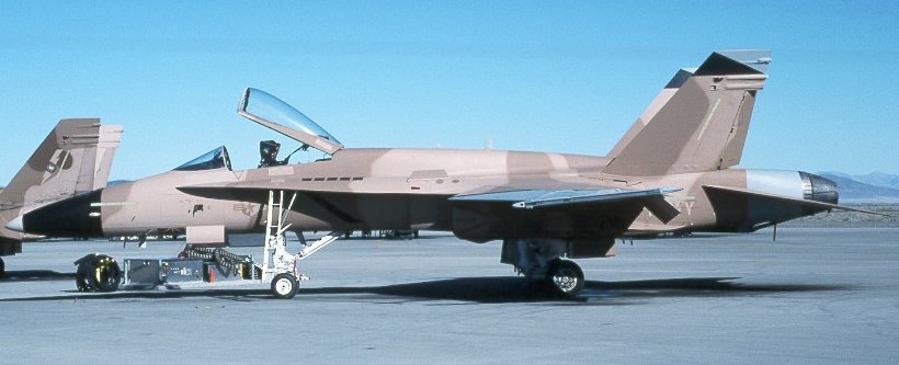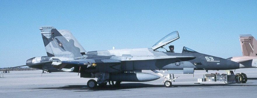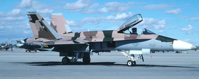 This Hornet sports a new blue/blue/gray paint scheme. It is based on the "standard" adversary pattern, but with blues and gray instead of tan and browns. As of September 2000, this was the only aircraft in this scheme.