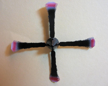 NOTE: Use a piece of Manila folder paper as a jig with a hole punched in it for the prop hub shaft and blade alignment reference lines drawn in at whatever degrees the blades are apart