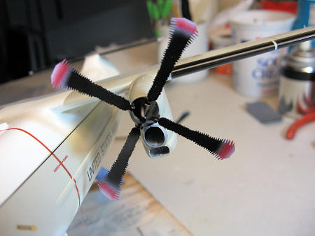 2. Find an in flight photo, (not a painting or drawing) of the prop you want to duplicate. Trim the leading edge of the blur to the desired width. Secondly, trim the trailing edge of the blur to a width slightly longer than the leading edge. I know this sounds confusing but if you look at a picture of a turning prop, the leading edge blur is usually shorter than the trailing edge. When satisfied with the shape and length of your blurs, you’re ready to install them on the prop hub.