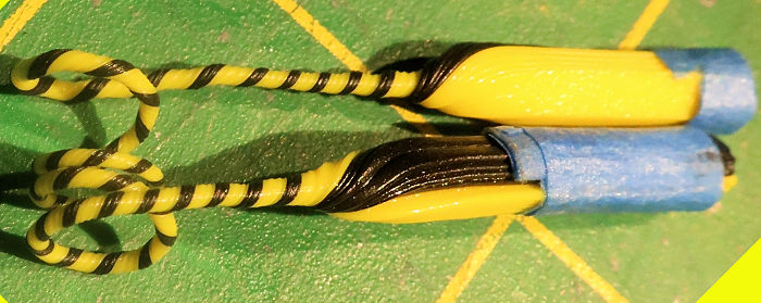 One can make scale twisted yellow/black ejection seat pull ropes by heating, then simultaneously stretching and twisting 3D-printed yellow and black hexagonal PLA strips.