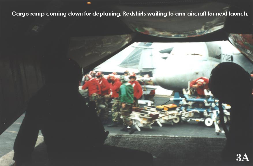 island and waited to board the COD. Getting word to board, we found our seats,