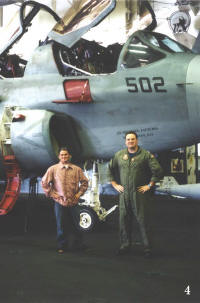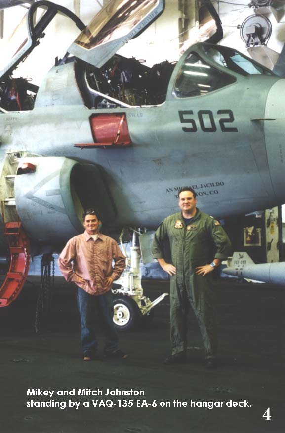 shows Mikey and Mitch standing by an EA-6B.