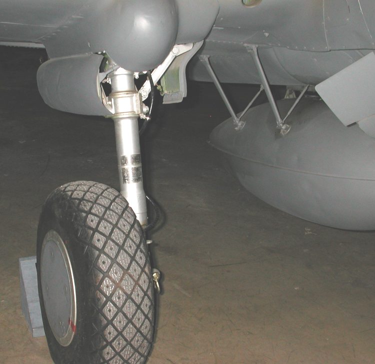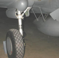 Here's a shot of the right landing gear and drop tank mount on a P-40E Warhawk |