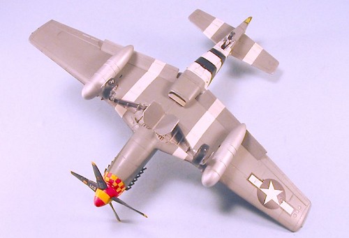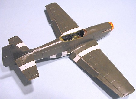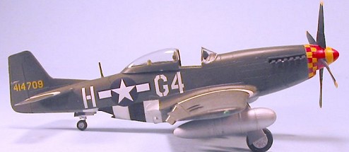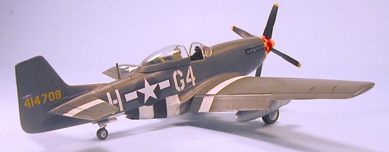 I used 110-gallon “paper tanks” from a Hasegawa Mustang kit, and a Falcon vacuform P-51D canopy. These and the landing gear were attached, the prop was attached, and the model was completed.