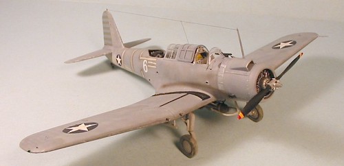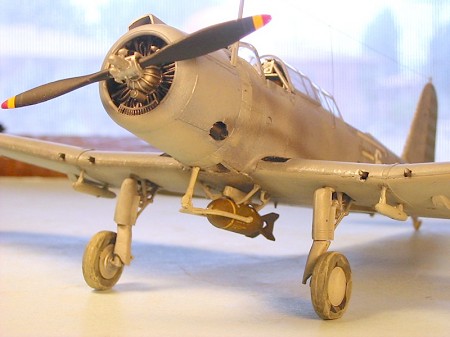 Sumner Whitten made a point in his interview of the fact that the Vindicators at Midway carried 500-pound bombs. This was due to the fact there were no 1,000-pounders on the island. However, given the poor performance of the airplane under a full load, the Marines had decided back when they first received the SB2U-3 to limit its load to 500 pounds. I used a 500-pounder left over from an Accurate Miniatures B-25to arm the model.