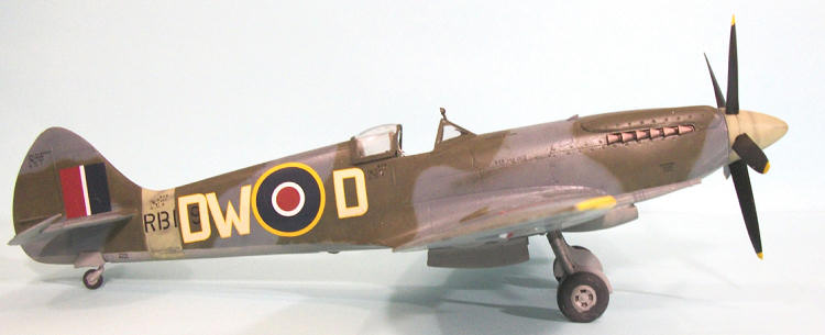 while the upper surfaces were painted with Tamiya “RAF Ocean Grey” and “RAF