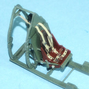 I substituted a pre-painted Eduard photoetch RAF Sutton harness set,
