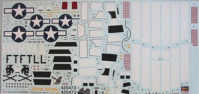 The decals provide markings for Gabreski’s last and most famous camouflaged P-47D, and for the well-known “Eagle” flown by Glenn Eagleston, with a natural metal finish. As I look at the decals, it appears Hasegawa may have misunderstood various of the “steps of the cross” that occurred with Gabreski’s markings.