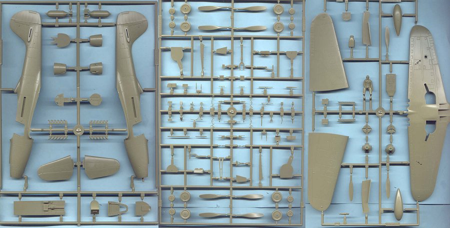 sprues of khaki-colored plastic, with the sparate cockpit doors and canopy in