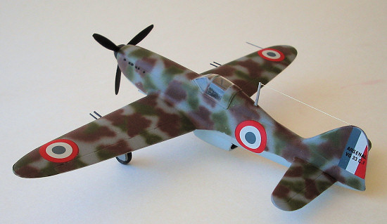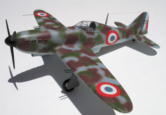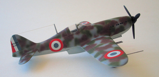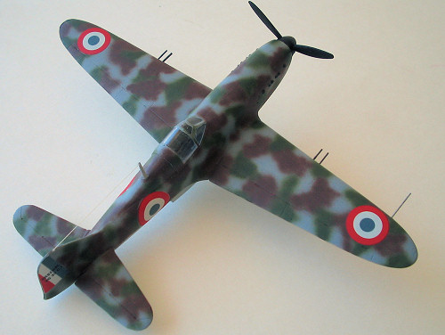 The French apparently did not follow a definite pattern, just spraying blotches of medium green and medium brown in a random pattern on the upper surfaces to provide the camouflage effect. Little or no weathering effect is required, as the aircraft never served with an operational unit and were rarely, if ever, flown.