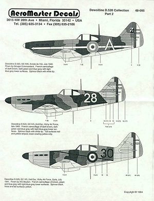 up some Aeromaster decals for this kit (48-095 Dewoitine Collection Part II) and