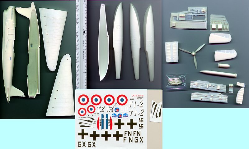 Inside the box are resin, white metal and vacuform parts, along with a strip of styrene that I assume is for struts of some kind. Instructions, marking guide and waterslide decals round out the package.