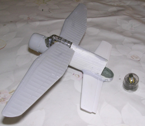 fuselage, engine and main wing follows the kit instructions. There is a simple