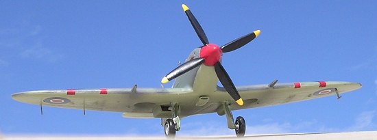 In view of the various schemes that come with this kit which also contain minor differences on the exterior, it is at this stage that you have to make up your mind which scheme you intend to use. There are two sizes of air intakes under the fuselage nose. There are also variations in the length of cannon barrels that are butt jointed on stubs on the wing leading edges. The undercarriage legs and detail tail wheel and arrestor hook were then fixed in place as were also the under wing aerials. Trimming the clear vacform canopy was now carefully done and gets it to fit using Kristal Kleer and allowed to dry. Following that a tiny drop of super glue was allowed to flow along the joining edge. Sealing the cockpit with Kristal Kleer or even white glue will seal it effectively and prevent it from clouding with fumes when superglue is applied in order to secure it strongly. The extra clear cockpit was saved to go onto some future Spitfire kit which will replace the injection moulded one that is more often having the plastic section on the thick side.