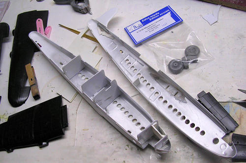 two-part fuselage was cut and sanded as if I am building a vac form kit, checked