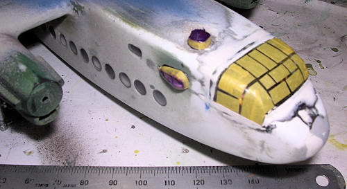 of the fuselage. Two strips of styrene were cut and with one being wider