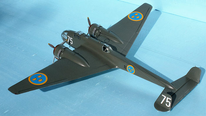The national roundels – the three crowns markings – came from a sheet from Flying Colors with Swedish roundels. The size is 1800 mm for the wings and 1320 mm for the fuselage. The white numbers 75 came from a special sheet covering PBY-5a, Dornier Do 24 and Heinkel He 115 in Swedish service. The black 11 wing marking was on a special decal sheet for Pembroke in Swedish service. All of the decals were first class print quality and not too thin. All decals got a layer of HB Satin Cote for protection. The finish of this product matches that of the acrylic paints from Model Master.