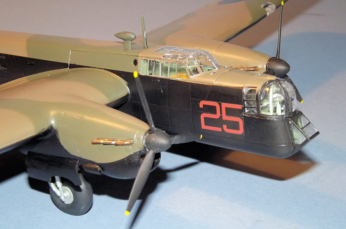 The propellers had been painted black earlier in the build, with the tips picked out with a dab of yellow , they were added to the nacelles together with the exhausts.