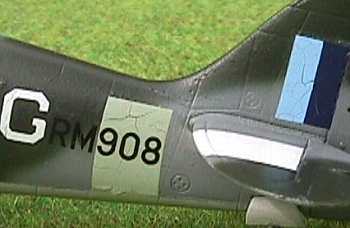 Again, a couple of coats of Klir and it was decal time. All the Aeromaster decals went on very nicely, using Micro Set and Sol as appropriate. The white outline (background) for the panther and fuselage codes is provided separately to avoid problems with register. Although I could have sprayed the tailband, I decided to use the decal, and this didn’t fit too badly after a few applications of Micro Sol. Stencils are also included on the Aeromaster sheet which is good as they were not included in the kit decals.