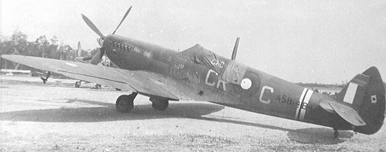 view photograph of Caldwell's Spitfire VIII published here courtesy of Peter