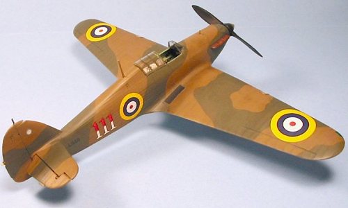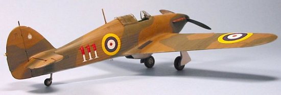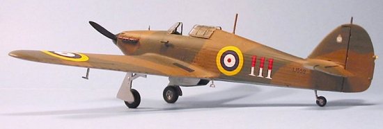 The elevators and rudder are molded separately. I posed them with the elevators slightly "drooped" and the rudder slightly "cocked." Since I had decided to do a very early Hurricane I, I did not add the ventral fin.